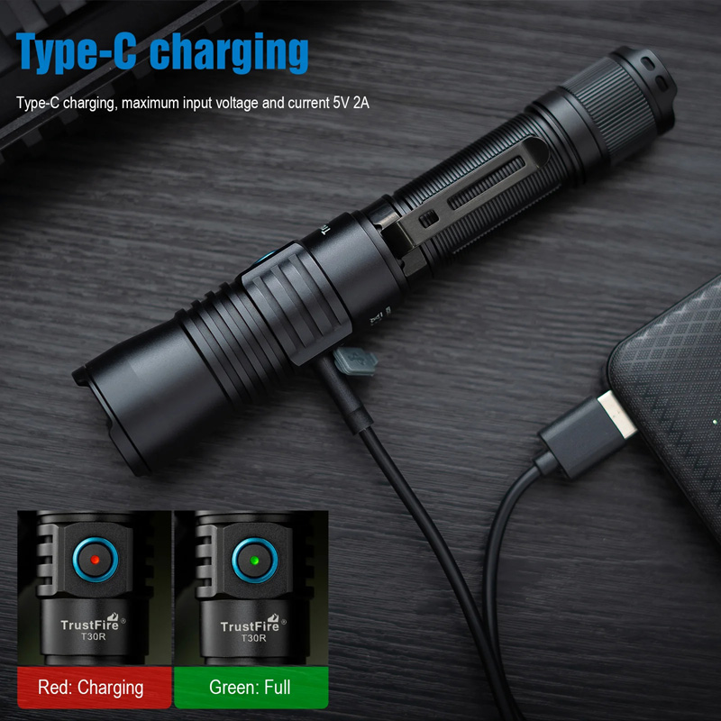 best led flashlight TrustFire T30R 460lm 1100m Range Type-C Rechargeable LFP Tactical Flashlight Self Defense Tools Torch