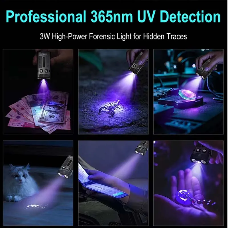 flash light light Boruit EV20 365nm UV Green Point Light Long Range Multifunctional Mini Flashlight Keychain USB Portable EDC Torch Light