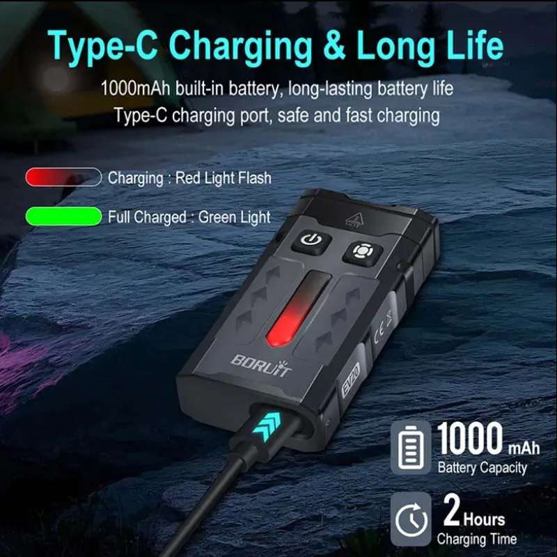 - Package Include:1x Flashlight +1x USB C Cable +1x Keyring +1x Clip+1x Manual +1x Color Box+1x Lanyard