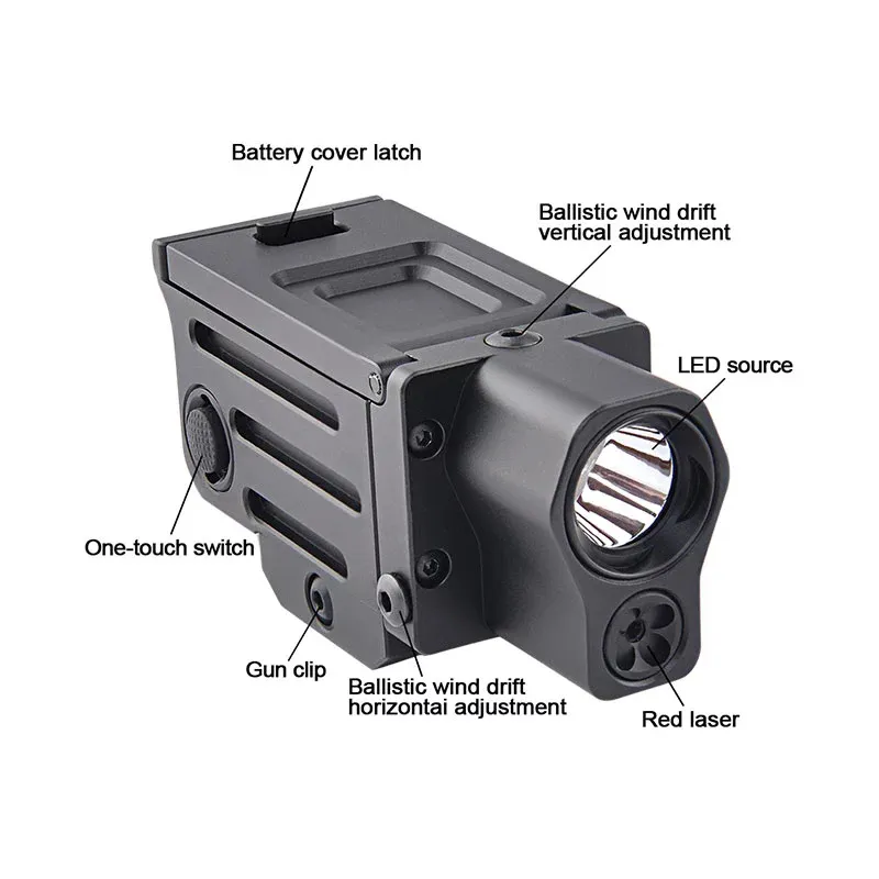 - Feature: Weapon light with red laser, quick install and release, with strobe